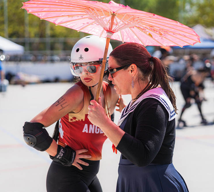 Recently, Angel City and Polly Urathang hosted High Roller, a Cannabis-sponsored, consumption-friendly event in Los Angeles, where two teams squared off on a flat track and fans watched a friendly grudge match between 710 Labs and Terphogz. Afterward, when the score was tallied and the skates were off, we asked Angel City if any of their players would be willing to discuss the role Cannabis plays in their wellness routine and what kind of stigma, if any, exists around Cannabis in this sport.