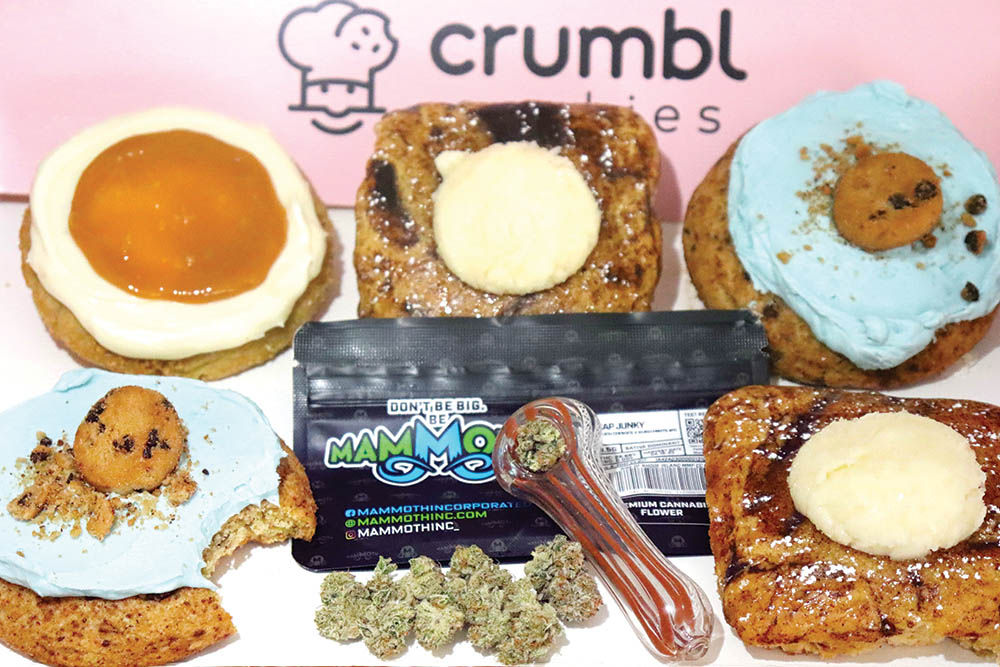 Arriving home with a box full of cookies and perhaps the best weed in the area, definitely gave feelings of indulgence and excess. The feminine and trendy baby-pink Crumbl box sits in contrast to a masculine, black, blue and green Mammoth pouch. Opening everything up at the same time is an experience in itself. Bakery aromas and the joyously loud scent of flower flood the surrounding area. With napkins and smoking apparatuses ready, the next question is: How to attack? This writer humbly suggests taking a breath in this moment and savoring the anticipation!