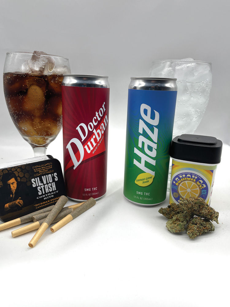 Haze + Doctor Durban THC sodas paired with their Smash Hits Cannabis flower counterparts of Lemon OG Haze and Durban Poison