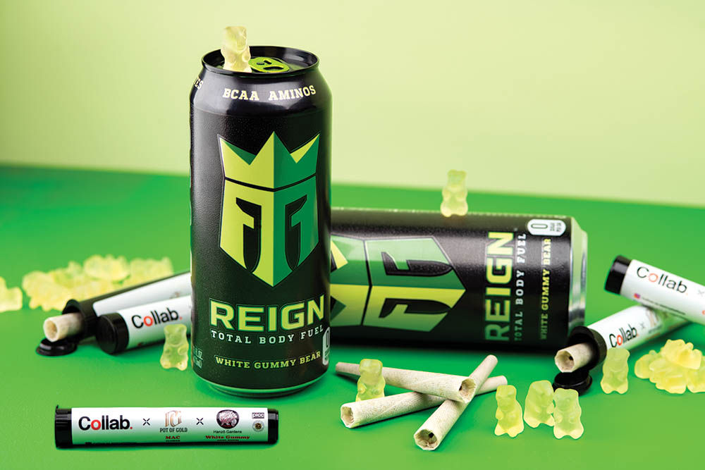 Climb to the throne of stoned energetic perfection with the heady combination of a Collab joint with the zero sugar, high energy fuel that Reign’s the bake-and-gym day.