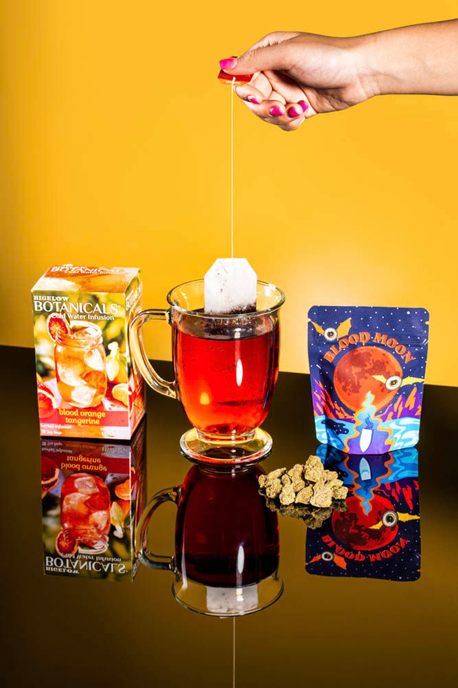 Oranges for days in this pairing provide an uplifting and energizing combination, even with the tea being caffeine free. Something about the terpene profile of citrus-rich strains always puts me in the mood to get things done, at work and personally. Rolling up a fatty of Blood Moon and getting an ice-cold glass of tea proved to be the perfect way for me to start a busy day.