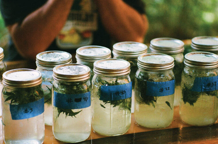 This festive occasion in late September brings together a group to de-leaf and buck the flowers for steam distilling into terpenes for their aroma and flavor. Later, I’ll joyously dance in a fog machine that’s wafting the Blueberry Pancakes scent. I’ll eat whipped cream infused with the plant’s essential essence. I’ll inhale other Cannabis flowers into my lungs as a soft, warm rain begins to fall and a lightning storm sends wavy electric jolts across the horizon.
