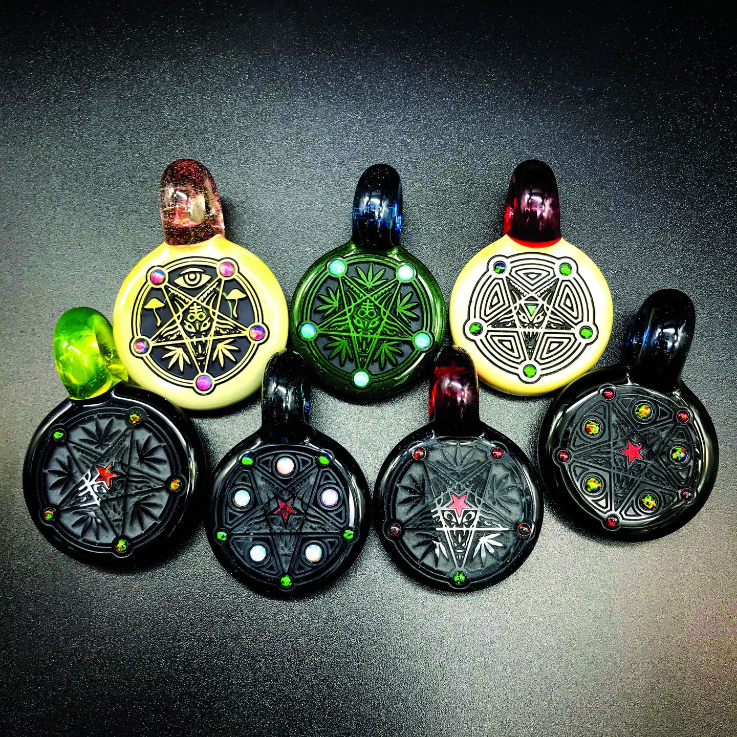 After smoking his first joint at a Metallica concert in 1989, Dwreck quickly became a pothead as well as a metalhead. Once he graduated high school, he moved to the city of Ithaca in New York State to attend film school, where he met some of his closest friends who would all go on to become notable glass artists: Gasp, Ease and Slinger. White spent the years that followed developing his skills, eventually participating in several glass competitions (including the Degenerate Flame Off and The Pipe Classic) and winning first place in the marble category at the 2nd annual Eugene Glass School Flame Off. But it wasn’t until he learned to sandblast from Slinger about a decade ago that Dwreck would develop his devilishly dark design style.