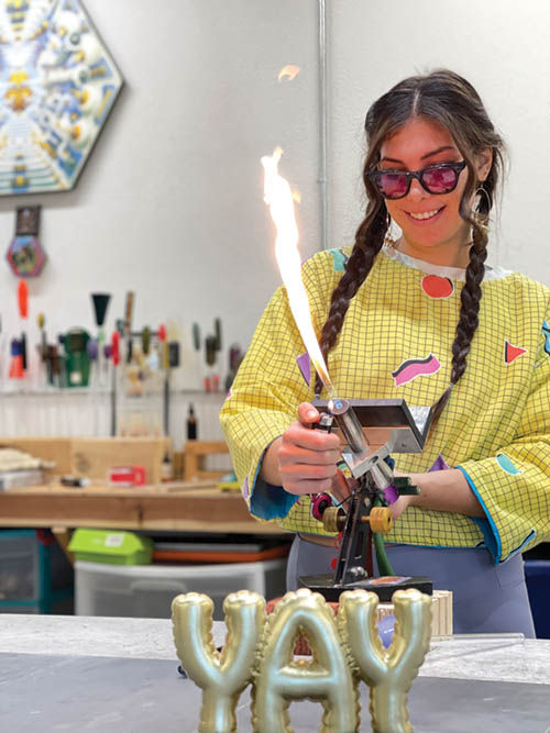 Coldberger is always on the move, it seems. When she’s not at home in Denver, you can catch her traveling the world at various trade shows, gallery openings and teaching classes. If you want to try to get one of these coveted learning opportunities, you can reach out to her about upcoming classes at the Corning Museum of Glass in New York or Barcelona Glass Studio in Spain. You can also catch her nearly every year at the world-famous Pilchuck Glass School, where she’s been on staff since 2014.