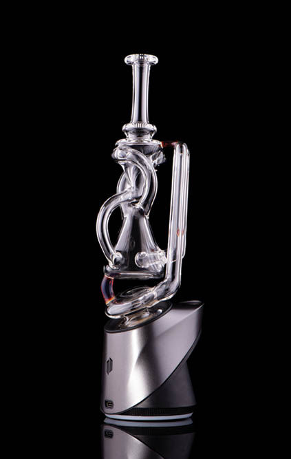 The Trombone attachment featured here is made for both the current versions of the Puffco Peak and the Focus V CARTA. They feature water percolation with a recycling function to make operation as smooth as possible. The joystick carb caps are functional for both the CARTA 2 and the New Puffco as well.