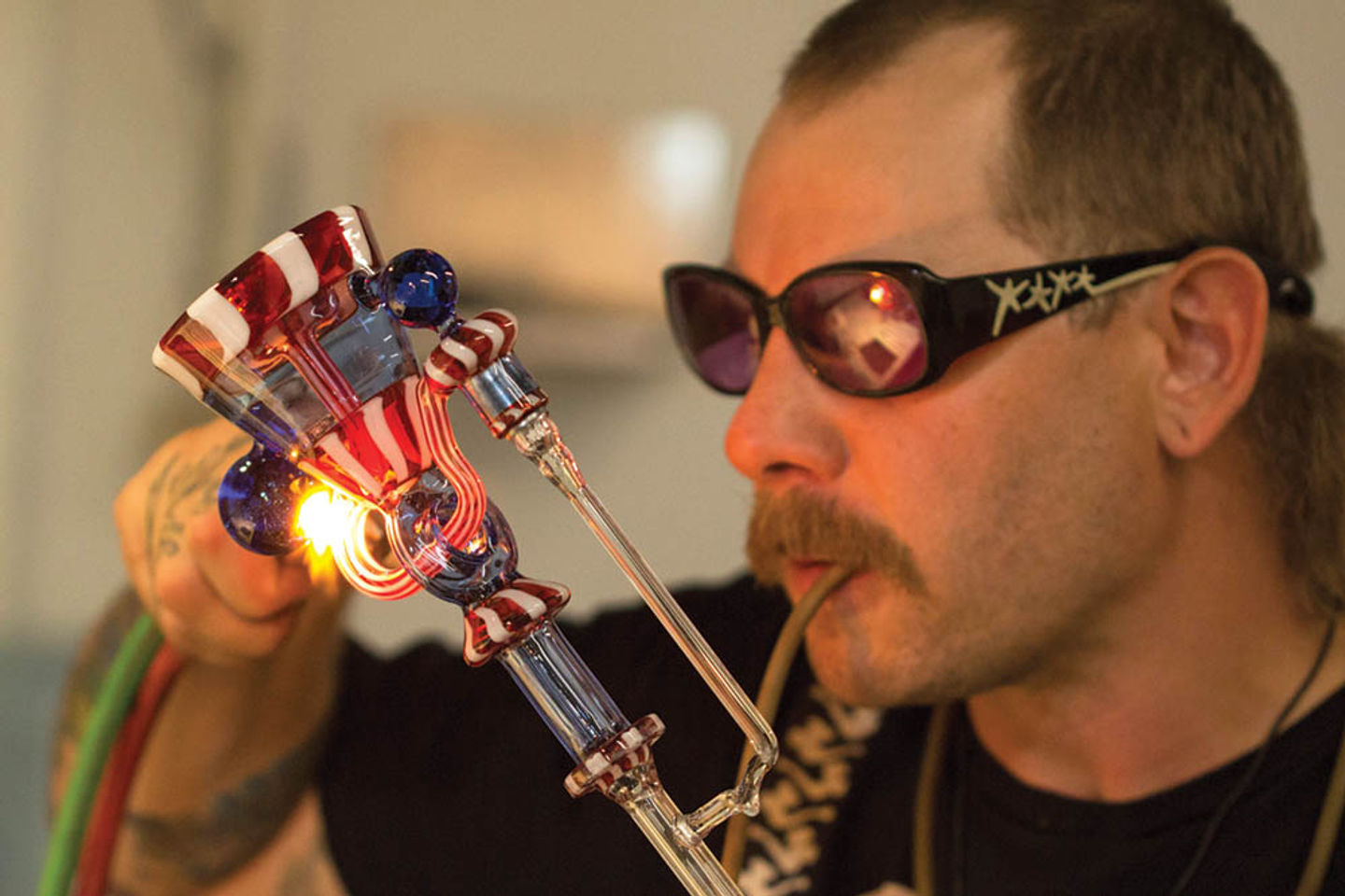 It wasn’t long before Scott Deppe of Mothership Glass, a fellow artist and mentor, recognized JD’s potential and brought him onto his team. This ultimately led to JD’s role in manufacturing the groundbreaking 2012 “Fab Egg,” a project that won “Most Innovative Product” at the 2013 American Glass Expo. Scott brought JD on stage and gave him recognition and acknowledgement of his integral part of the process.