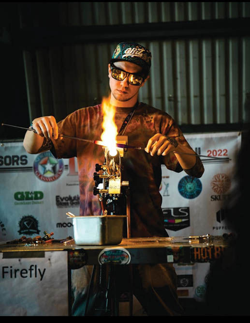 Nick Nowak first lit the torch in 2007, just 18 years old and driven by curiosity. Back then, it was all about soft glass beads — small, delicate creations that marked the start of a much bigger journey. Over time, what began as a fascination evolved into a calling. Now known in the art world as Firefly, Nick crafts intricate glasswork from his home studio tucked away in the northwest suburbs of Chicago.