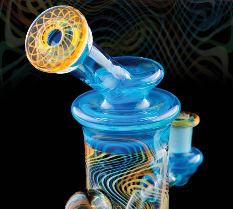 When asked what he would do first with a time machine, Gates’ answer was simple: “I’m going back to the dinosaurs!” This playful remark reflects the sense of wonder fueling his artistic vision. Born and raised in Baltimore, Gates’ interest in the medium started as a collector’s hobby. In 2017, he purchased his first glass art piece, created by Andy G, which ignited his passion and led him to explore what borosilicate glass could offer. That same year he had the opportunity to view live glass blowing by Scooby Meow Glass.