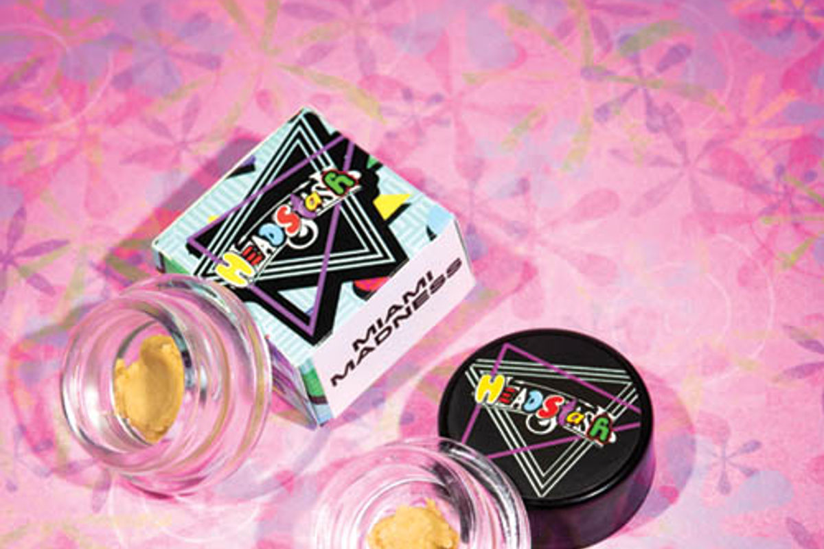 The Miami Madness is golden and gorgeous, oozing freshly squeezed passion fruit, citrus and creamy guava with a fizzy, earthy, hashy finish. First hits of a low-temp dab send a rush of gassy tropical fruit into the lungs, captivating the mind with a floaty, euphoric and feel-good high ready to strut the boardwalk or contentedly lie in the sand.