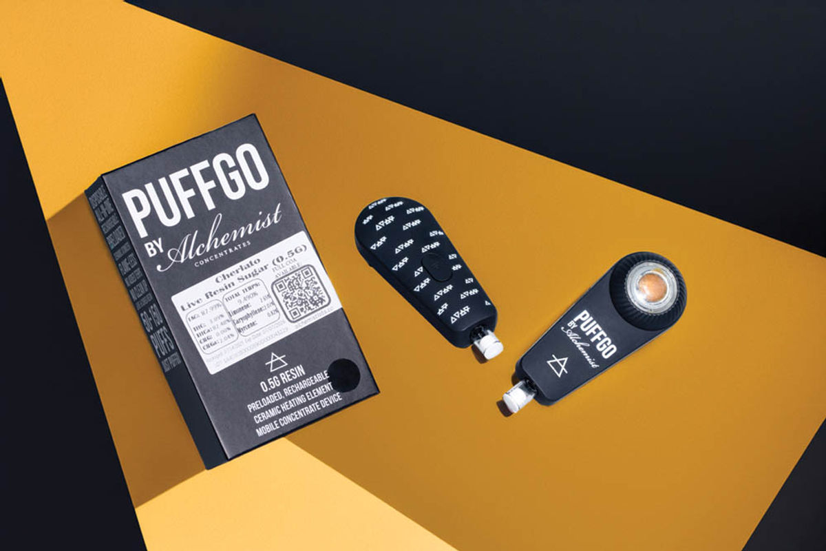 This month’s concentrate comes in a unique, prepackaged form: a half-gram of Cherlato live resin sugar neatly displayed within the new Puffgo device by Alchemist Labs. This little contraption is the perfect way to indulge in concentrates on the go, and it fits nicely into our Tech Issue. We obviously like to focus on the quality of the oils that we dab, but often don’t spend enough time considering the methods and technology used to create a top-tier concentrate experience. The Puffgo is Alchemist’s latest and greatest device that comes loaded with a half-gram of oil and is ready to toke, mirroring the same standards of a traditional dab.