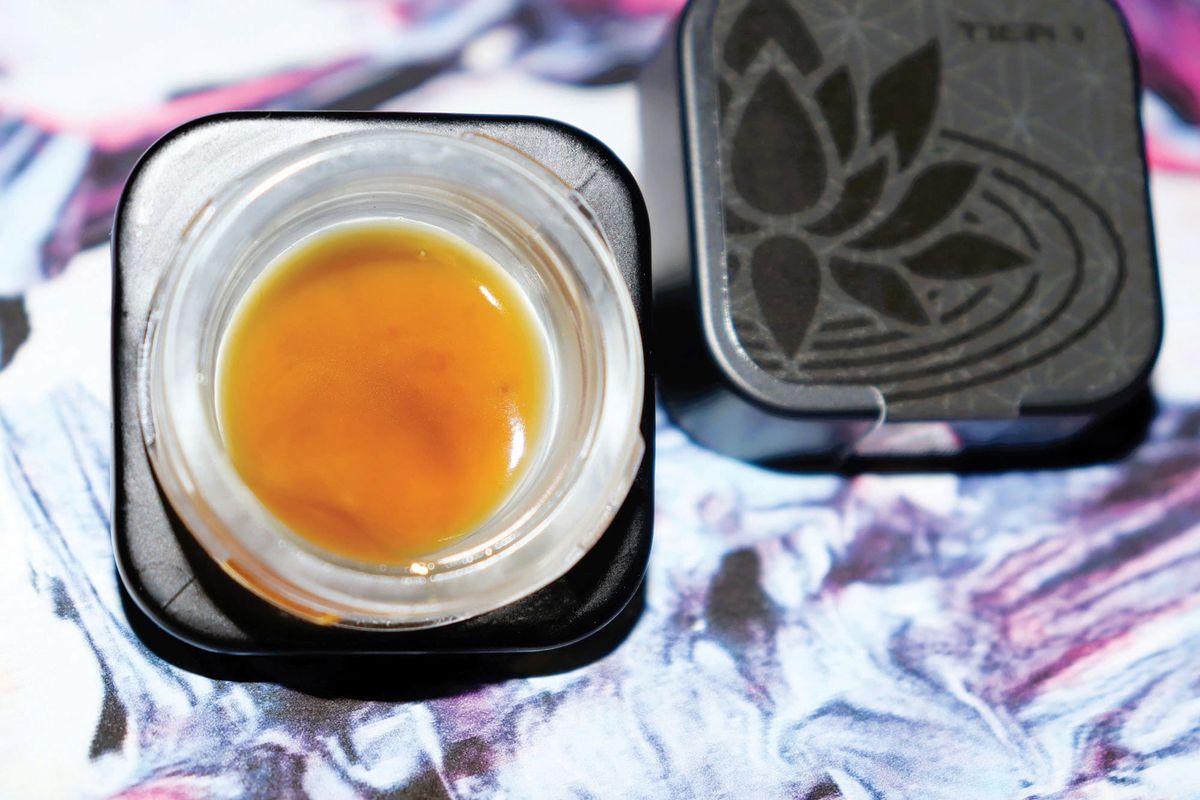 The final product is an impressive, saucy and fragrant rosin that leaves no doubt as to why GMO Cookies is an extremely popular strain. Derived from a cross of Chemdog x GSC, this is single-source live rosin – meaning that Ripple sourced the genetics, grew the flower and pressed the hash – so you know exactly where the final product came from. This one is extra terpy with a really viscous layer, resembling caramel on top of flan. Crespo explains that this is his “high terpene full spectrum live rosin,” and we can see exactly what he means.