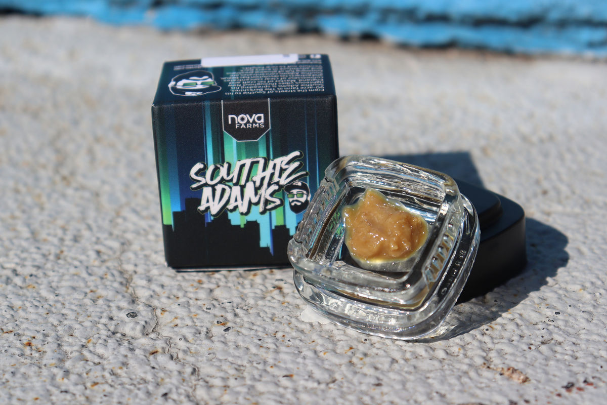A baby blue colored bag with the Cookies logo made me feel like I was receiving some official and authorized dank from the Cookies crew. Nova Farms/Southie Adams packaging is some of my favorite – their concentrate box was black, green and blue – which matched the Cookies lock bag. I enjoyed reading the story on the side of the box, complete with a message of good vibes and positivity, which is something new and creative for dispensary packaging.