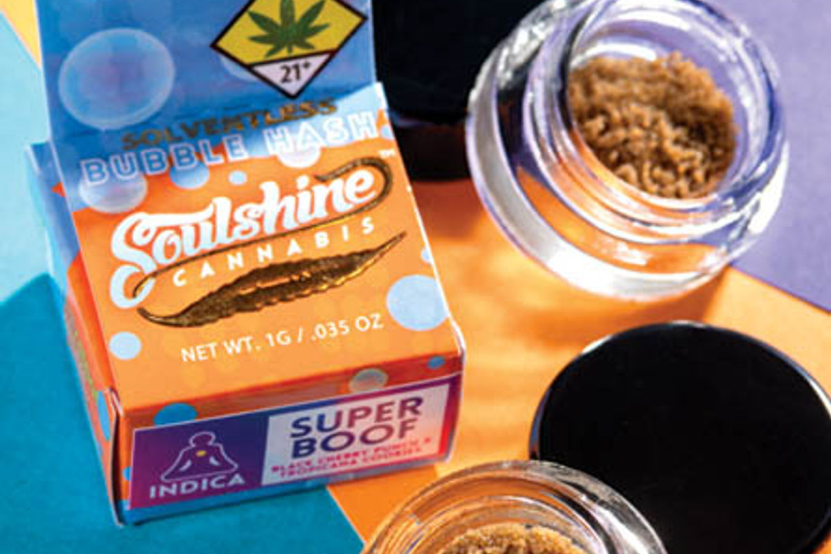 But what is boof, you might ask? It’s weed slang for mids, aka average weed that’s simply OK. Which is why it’s ironically cool to call it the Super Boof, which is not boof at all. Grown by Soulshine Cannabis and processed into hash, this euphoric indica strain is a cross of Black Cherry Punch and Tropicanna Cookies.