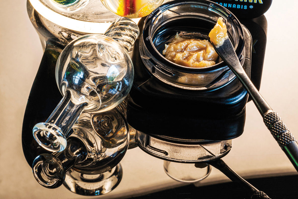 Taking a small dab from the mini-rig banger, a few low-temp, cold-start vape puffs filled my mouth with a beautiful taste. The resin brings a very sweet grape and berry flavor with a slight twist of nutty dough, and after another round of puffs, I started to feel my shoulders and back muscles relax very quickly. I really enjoyed a couple of dab sessions like this during the day – a perfect complement to my coffee and a slice of pie.