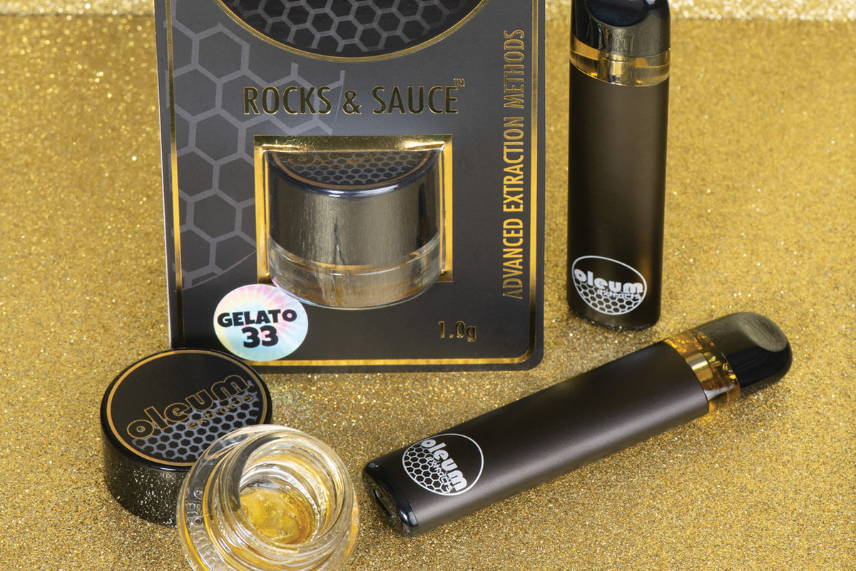 All good moments start with a dab, so we hungrily opened the Gelato 33 rocks and sauce. Oleum was the first company to bring THCA diamonds (they call them Wizard Stones) to market in Washington, and this concentrate perfection pairs THCA rocks with high terpene sauce from Gelato 33, which is a cross of Sunset Sherbet and Thin Mint GSC. Opening a jar reveals chunky, glistening diamonds floating like icebergs in a sea of terpy sauce, which oozes a vanilla-citrus-mint-gas with a touch of earthy-Cookies mixed in.