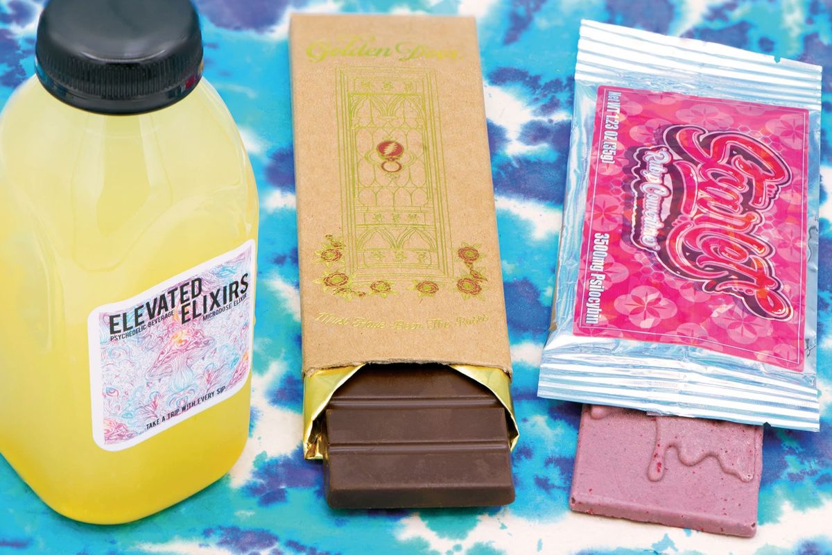 Bliss Mushrooms is an Oakland-based brand producing exotic variety fruits, microdose capsules and an array of flavored infused chocolate bars, including this Scarlet “Ruby Couverture” varietal only recently released. The pink hue of the chocolate is derived from the ruby cocoa beans the bar is crafted with and does not contain any dyes or coloring. The flavor and sweetness of the chocolate is somewhere between milk and white chocolate, and the bar is covered with mouthwateringly-tart powdered organic raspberry that does a lot to balance the sweetness. Each bar packs 3.5g of mushrooms and is scored for easy separation and dosing. Available at select outlets in Oakland, Santa Cruz and Arcata, Bliss’s infused chocolate bars are some of the first mushroom products you can legally buy from brick and mortar stores in California cities where psilocybin is decriminalized.