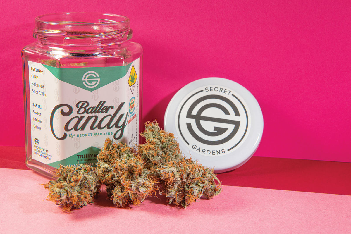 While diamonds and fresh threads might be what covers a baller on the outside, true ballerness starts on the inside – and there’s no better place to fill up than the lungs. This is where the aptly named Baller Candy from Secret Gardens of Washington comes into play, with beautiful flowers and a unique genetic lineage that combine for spectacular effects. Known as a trihybrid, this strain has both sativa, indica and ruderalis properties – the latter being a rarely used word in today’s commercialized dispensaries.