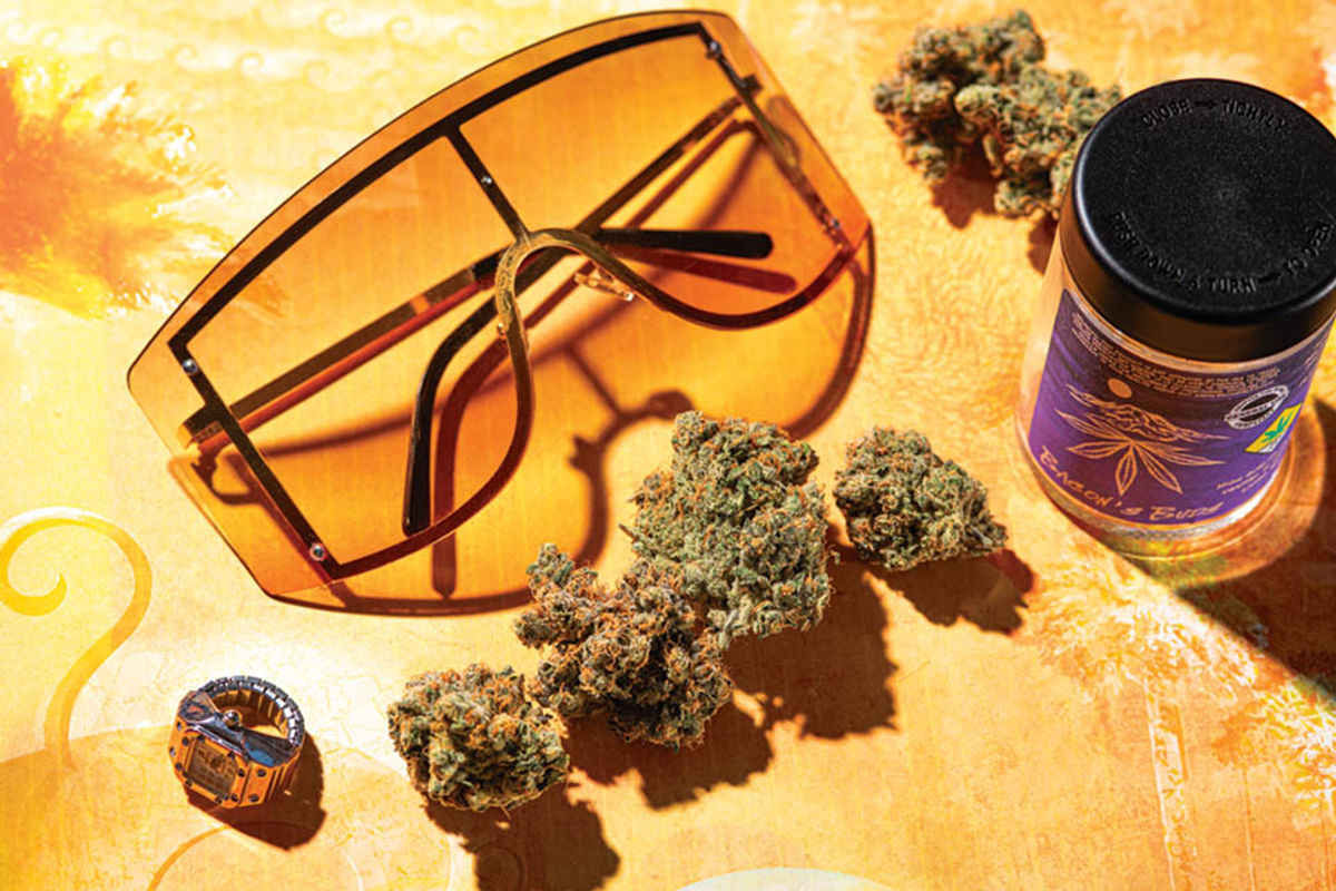 The Big Smooth, which sounds like a professional surfer’s Instagram handle or the stoner uncle’s nickname, is a chunky, beautiful cut bred by Exotic Genetix. It combines two classic heaters, OG Blueberry x Cookies and Cream, for a sweet and exotic flavor profile. Each bud is giant, with foxtails pushing out that are covered in trichomes with a layer of red hairs. Stunning in the jar, the buds are pillowy soft with a medium-thick density, coating fingers in trichomes as a bowl is loaded.