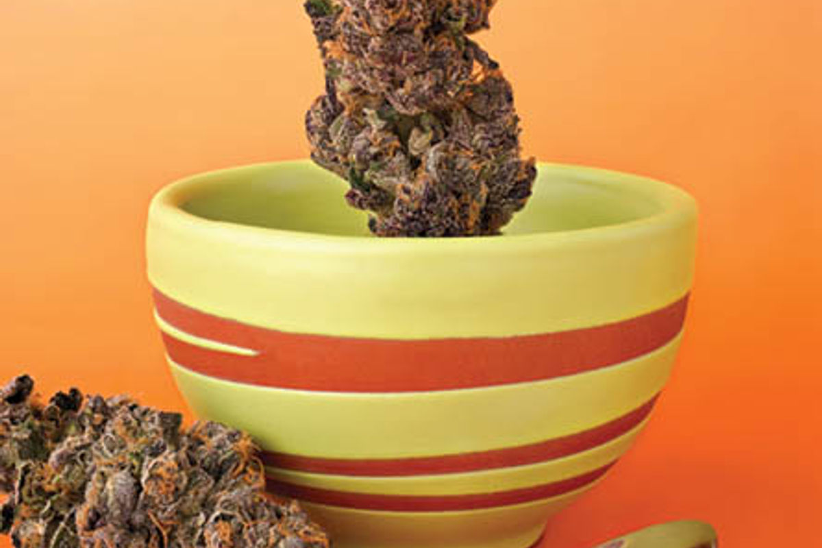 Cracking a jar of Candy Apple Kush may cause whiplash and will certainly clear a room (or fill it — depending on the crowd). Breaking a nug, and the nose hits just as heavy on both sides of the aroma ring, delivering scoops of savory intrigue that pepper the senses. It’s like a rubber-wrapped sirloin with a side of sweet pear, a contrast that somehow works, pulling you in for another whiff. The flavor follows suit — fruit-forward with a slip of smooth, meaty stank lingering on the tip of your tongue.