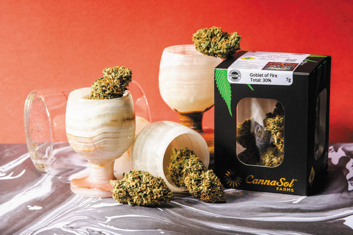 The Goblet of Fire is a badass name for a strain, whether you grew up reading “Harry Potter” or watching the movies. We wish there were a spell to make magic seeds grow quickly, but the real timeline of sun-growing Cannabis takes half a year. Planted in late spring, plants take months to develop, rooted in the earth and dancing in the elements that gently stress the plant into producing terpenes and flavors not found in indoor buds. CannSol’s husband-and-wife team, Jeremy Moberg and Sabina Boehm, have been growing weed outdoors for decades. Catch Moberg’s black helicopter story on Leaf Life podcast episode #208, “When Weed Was Illegal.”