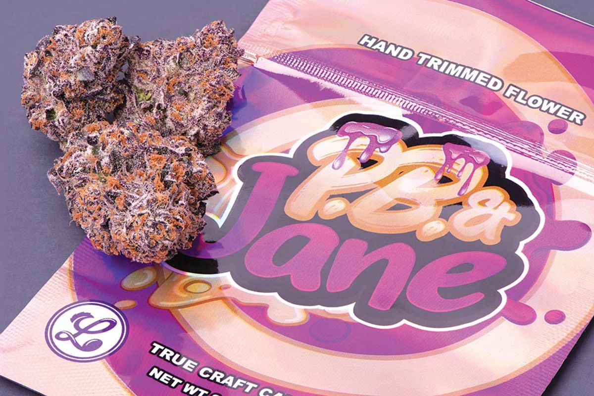 When the Lumpy’s crew started looking for new strains two years ago, they decided to cross their Cherry Jane (Pink Lemonade x Cherry Pie) with Peanut Butter Breath (Do-Si-Dos x Mendo Breath). What they ended up with were two different phenotypes that were huge hits with their R&D team. While their Peanut Butter Toast has a strong funky smell and a dark green complexion, it’s the sweeter and more Cherry Jane-looking pheno that stopped us in our tracks: a ruddy, sparkling flower called PB & Jane that off-gasses a nose-burning peanut-buttery aroma with fruit notes.