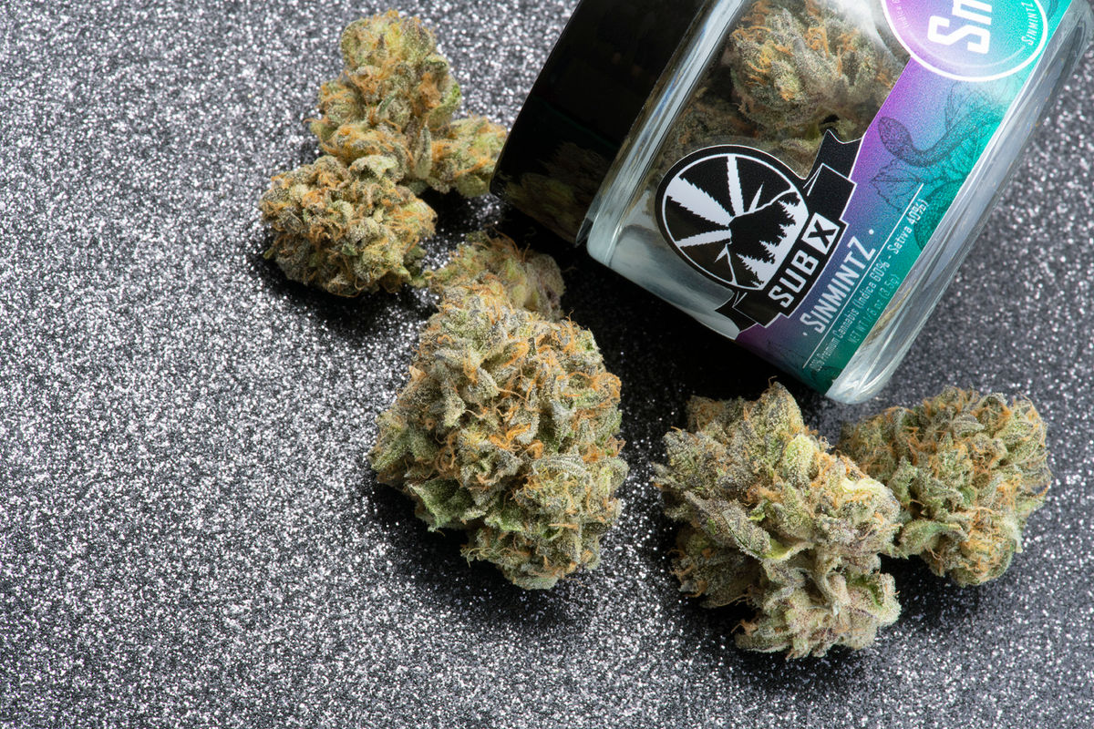 Subdued Excitement is one of our favorite producers of craft Cannabis at scale, with a focus on unique strains like this tantalizing cross of SinMint Cookies and Zkittles. The resulting SinMintz is ripe with dank Cookies and Kush flavors, while standing out with beautiful jar appeal. Each bud is ridiculously frosty, featuring gorgeous purple coloring and a lightly sticky, medium density structure that breaks up perfectly for smoking.