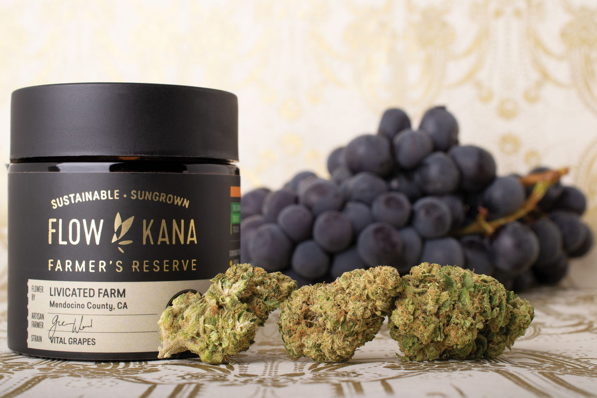 A featured flower in the curated Farmer’s Reserve line from Flow Kana, Vital Grapes was originally called Ital Grapes – a reference to the Rastafarian culinary concept of Ital, or natural, organic living and eating. It’s a delicious cross between Chem Cookies and Banana Punch, with frosty, chunky flower offering a scrumptious mix of pungent fuel and musky fruit aromas and sweet, round mouthfeel. The overall effect is that of soothing stress relief and dreaminess, without sleepy sedation.