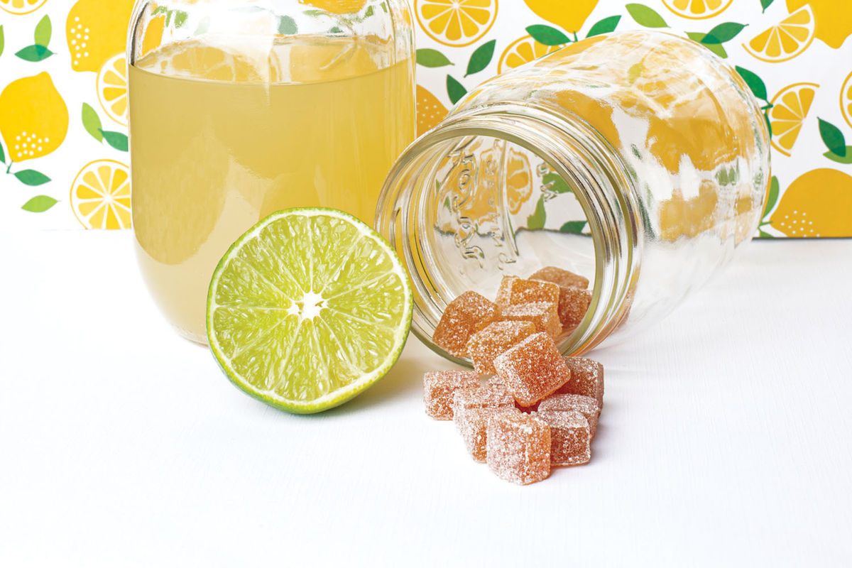 For our second round of pairings, we dipped back into the fridge for another glass of mojito to go with a Lemon Drop gummy. Unlike the Watermelon Mojito variety, the Lemon Drop had a more complex flavor. A dominant lemon profile was met with spicy notes of turmeric that made the gummy taste just like its cocktail inspiration. Paired with the citrus of the key lime, this was a home run of sour flavors that really delighted our taste buds.