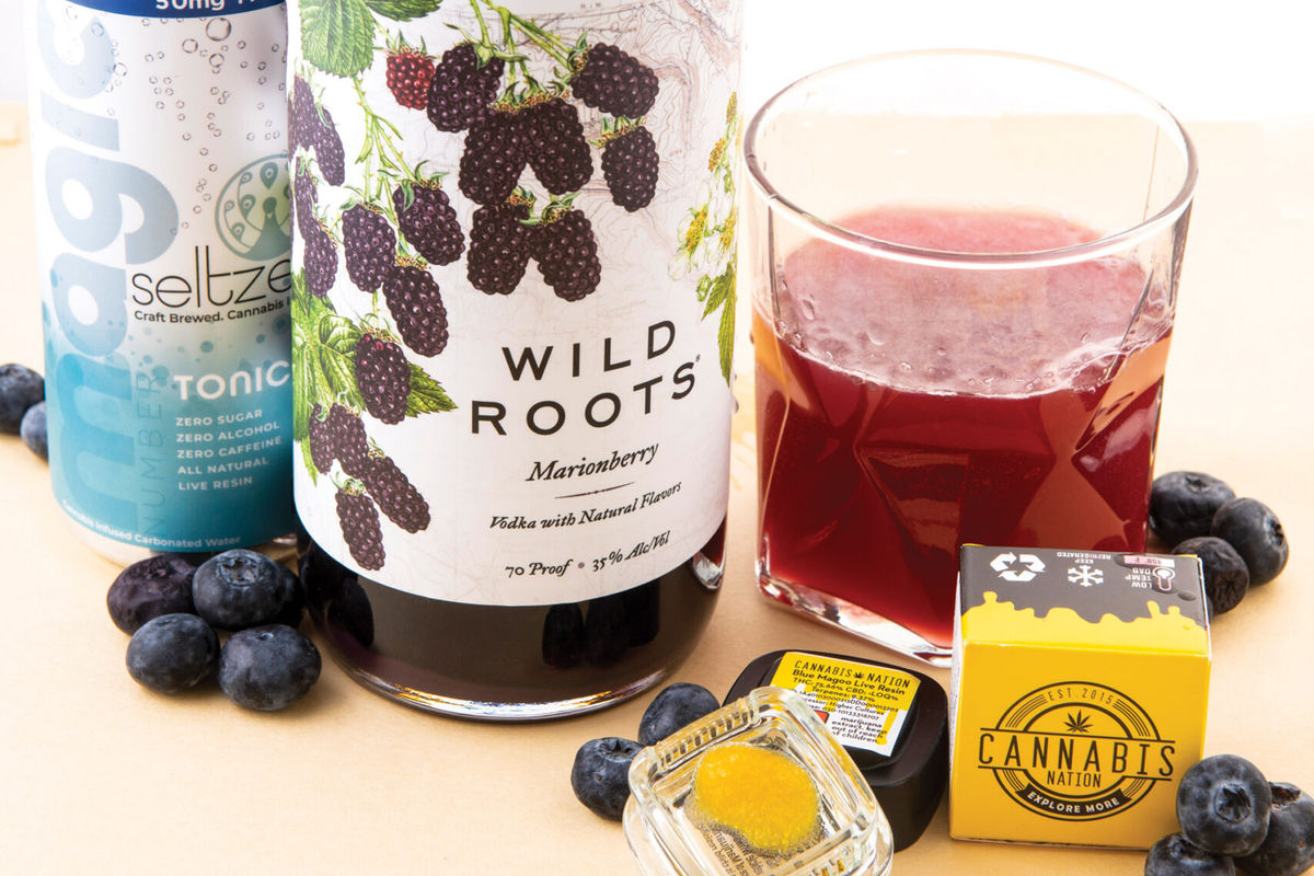 At 50mg of THC, I decided to let the seltzer do all of the heavy lifting in this cocktail. I used the Wild Roots huckleberry vodka as a way to add a note of color and flavor – less than a quarter ounce in each serving. As Magic Number uses live resin in their sodas, this is already a very potent potable.