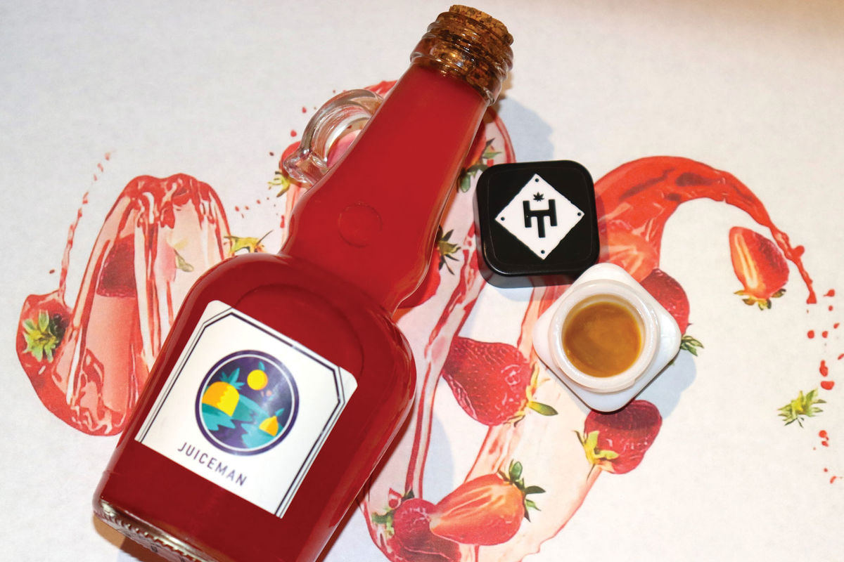 Hiker Trash from Maine brings us Strawberry Candy – a cold-cured live hash rosin that speaks to the sweet tooth by crossing Orange Skittlez x Strawberry Guava strains from Bloom Seed Co. It is a broad spectrum rosin (73-159u collection) that really covers all of the bases. Cold-start dabbing with water filtration is recommended for this type of consumption, in order to really taste the terpenes of the oil without overheating and burning them out. Juiceman’s HUHGO is orange-dominant with a sweet strawberry finish and smooth consistency containing Moroccan Orange, Red Delicious and Strawberry juice varieties. Together, they create a symphony of citrus and a sugar-packed punch. You can truly feel the care that each company puts into their products as this is certainly a special experience – a match made in heaven that’s a new favorite for our taste buds.