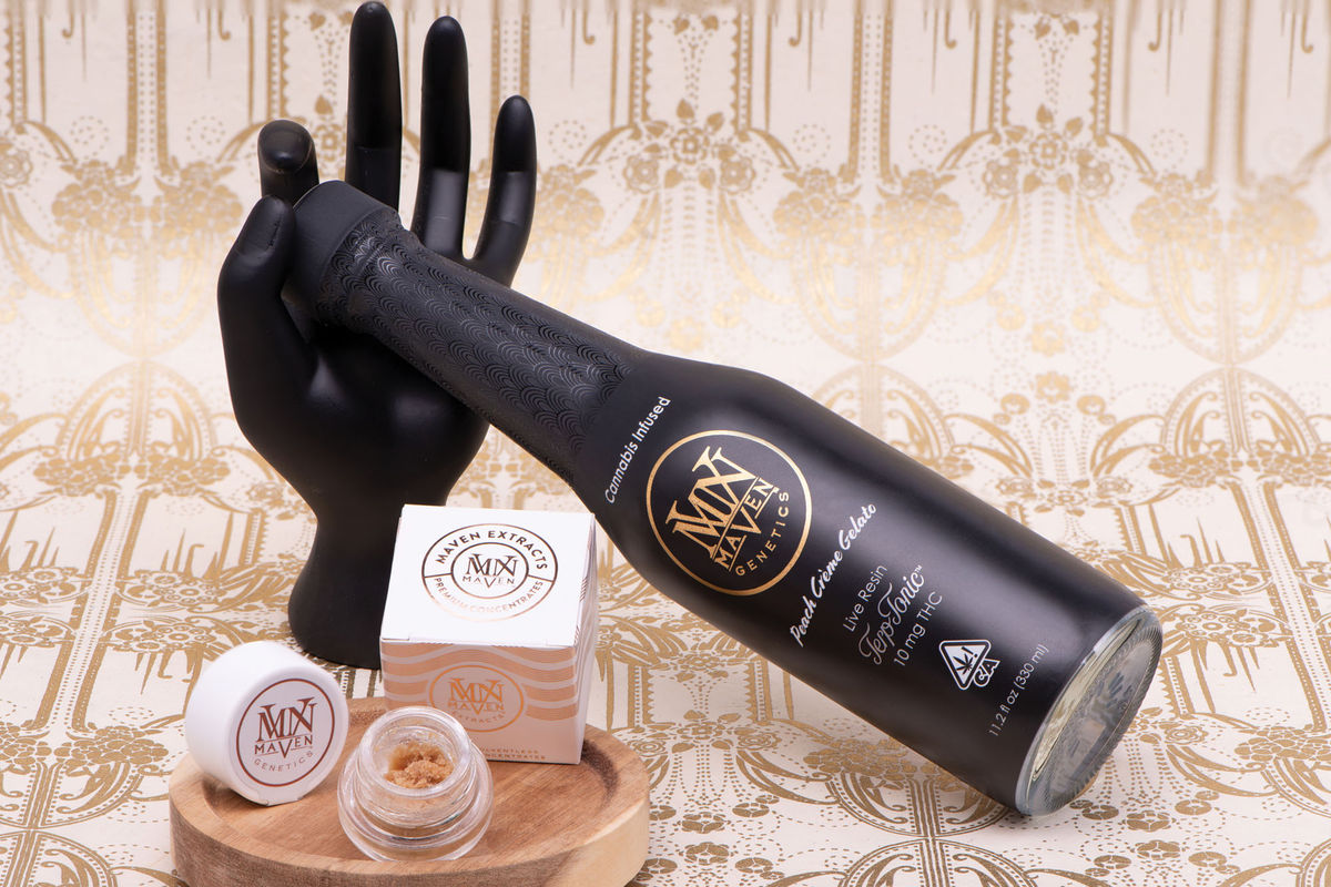 Made in partnership with Lehua Brands, Maven TerpTonic is California’s first single-strain live resin Cannabis-infused beverage. Light, refreshing and 10mg, it’s formulated with a simple recipe of pure mineral water from the Salinas Valley, terpene-infused CO2, and fresh Peach Crème Gelato live resin. First, you’ll notice an iridescent color that’s a lot like grapefruit soda. Then, a blast of terpene gas lets you know this pleasant smell is unmistakably Cannabis. The flavor is like terpy sparkling water and as the piney notes make their way over your tongue, you pick up that peach with a flash of sweetness. The combination makes for an intriguing take on the quinine flavor of traditional tonic waters.