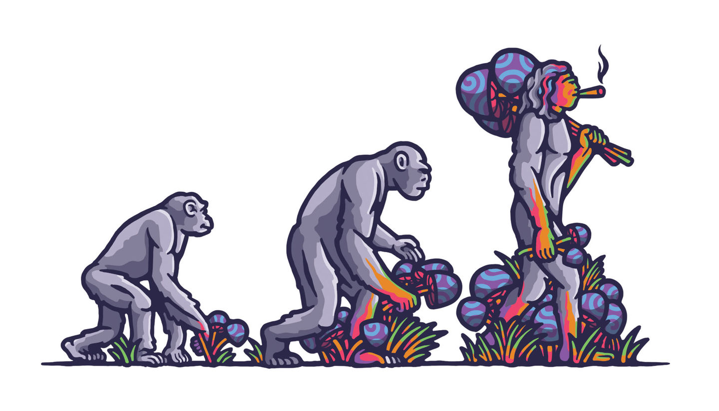 It all started in 1992 when McKenna broke the world’s collective brain with his book “Food of the Gods: The Search for the Original Tree of Knowledge: A Radical History of Plants, Drugs, and Human Evolution.” In it, he proposed a radical evolutionary theory: that psilocybin mushrooms were responsible for catalyzing our evolution from Homo Erectus into Homo Sapiens. In other words, our bodies and brains function as they do today because our ancestors tripped out on psychedelic mushrooms. The psychoactive effects of these mushrooms, he argued, essentially reorganized the information processing center of the primitive primate brain – sparking the evolution of consciousness, cognition and language – by prompting hominids to engage in experiences like community, spirituality and self-reflection. Psilocybin, McKenna wrote, brought us “out of the animal mind and into the world of articulated speech and imagination.” This theory would eventually come to be known as the Stoned Ape Hypothesis (though McKenna himself never actually used that term).