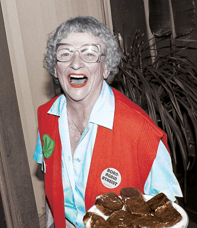 Rathbun first met Dennis Peron in 1974 when they shared a joint at the Castro’s Cafe Flore. Inspired by Peron, and a copy of Alice B. Toklas’s infamous Cannabis cookbook, Rathbun started baking weed-laced cookies and brownies as a side hustle to make ends meet using ingredients purchased with her $650 per month Social Security check and grower-donated Cannabis (often left anonymously on her doorstep). She sold her “magically delicious” brownies for a few dollars each out of a napkin-lined basket (and later, at Peron’s Big Top pot market) and advertised them with flyers posted on local bulletin boards. Before long, she was churning out hundreds of brownies a day, with customers reportedly lining up along the stairs to her apartment to order them by the dozen. By the decade’s end, she’d become a folk hero in the Castro known as “Brownie Mary.”