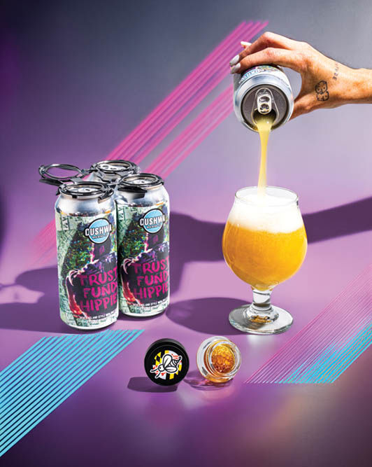Trust Fund Hippie is a New England hazy IPA brewed with Citra, Simcoe and Amarillo hops. Both hops and Cannabis belong to the Cannabaceae family, which explains their shared characteristics. This hop blend imparts resinous, bitter aromas that can resemble Cannabis due to its high levels of the terpene β-myrcene. Unlike traditional IPAs, which are often bitter and clear, hazy IPAs offer a softer mouthfeel and a smooth finish. The Citra hops in this brew add layers of pineapple, mango and citrus flavors.