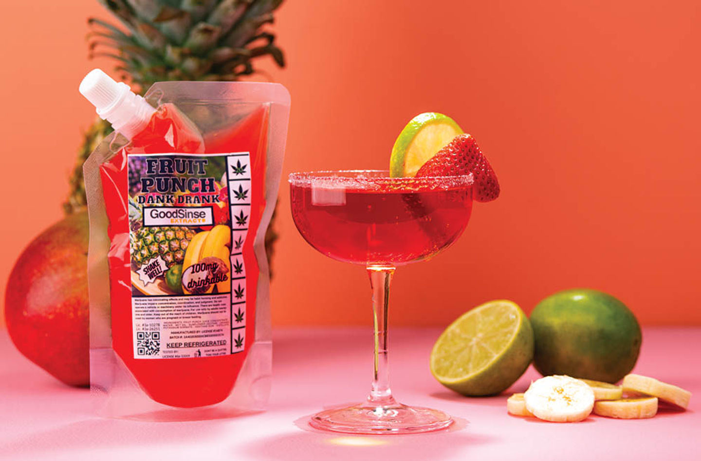 This punch starts with a pouch of Fruit Punch Dank Drank (basically the grown-up version of a Capri Sun). Filled with tasty fruit juice and 100mg of THC, these drinks are delicious on their own and pack a real punch, pun intended. Depending on tolerance, one pouch could be enough to spike the whole pitcher for a group, or make a personal beverage. This is a choose-your-own adventure drink, with the ability to make it as potent or even alcohol-free for an infused mocktail. So experiment, have fun and remember: You can always drink more THC … but you can’t drink less once the punch bowl is empty.