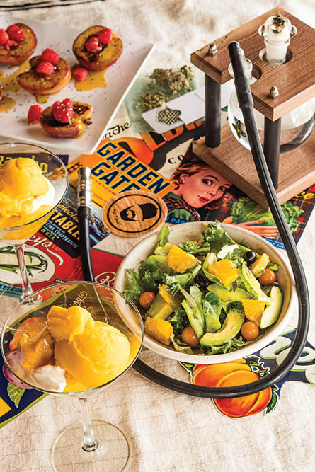 I was weed shopping at my favorite Electric Lettuce, the retro dispensary chain that checks all my Cannabis boxes and makes me feel like an (over 21) kid again! The budtenders know their stuff and turned me on to a new, euphoric strain that is relaxing, fun and tastes amazing. Kind of a citrussy (I taste orange) vibe, a hint of sweetness and a peppery, earthy finish. This strain has now surpassed my old favorite, Forbidden Fruit, because this is fire. In a couple of weeks, I am going to have a small dinner party, and we are going to do some terpene pairing. I’m desperate to use my new tabletop bong and create some interesting flavor combos. And right now, fruits and vegetables are bursting with flavor — this is going to be fun.