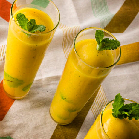 4. Adjust thickness with more milk or ice if needed. Add mint.