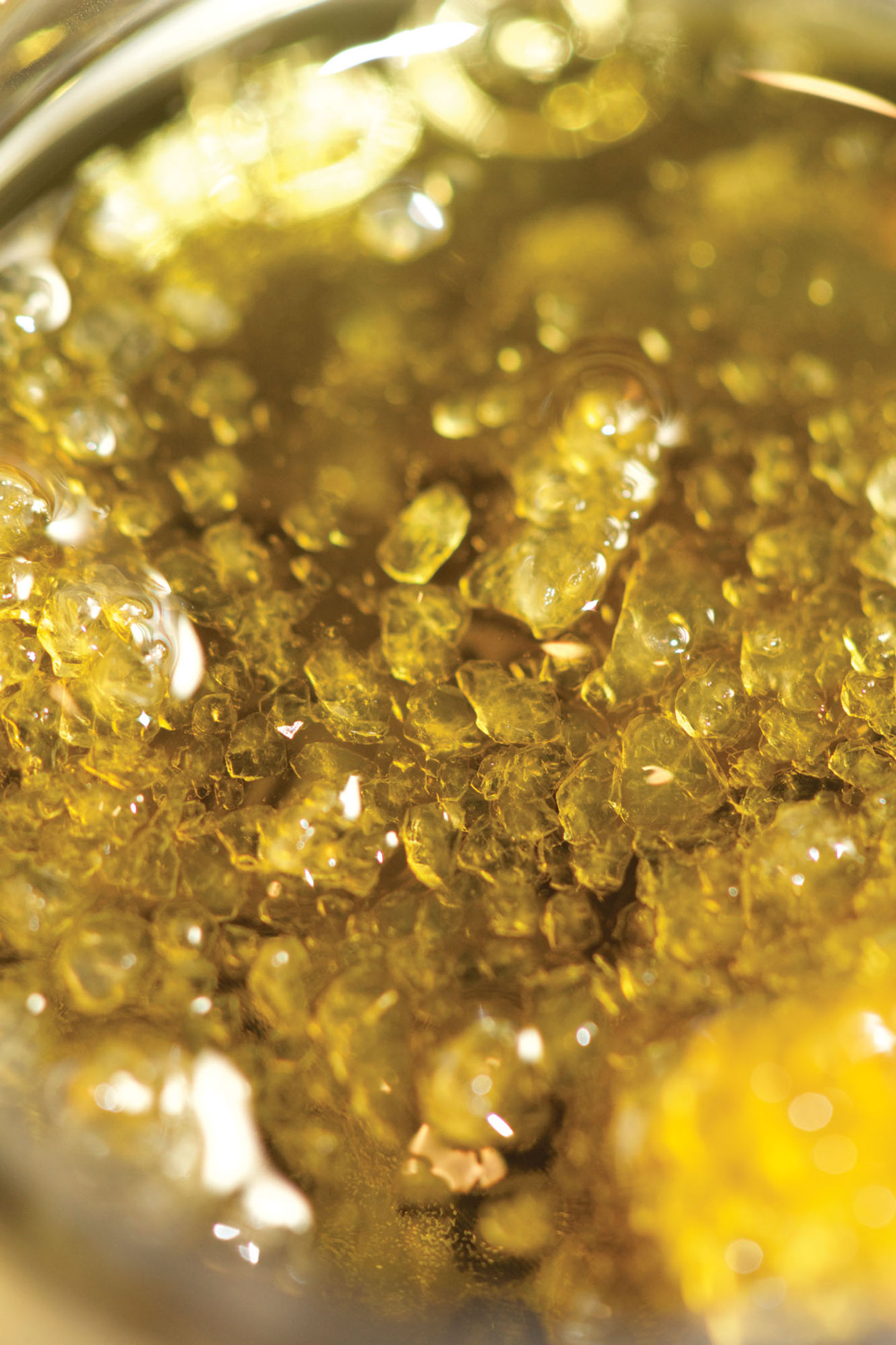 Born from the need to judge multiple entries in a short duration of time, Simpson has created what he calls the “bloom dab” – his way of assessing how robust and satisfying a particular concentrate is. The first step is to warm your banger enough to melt the concentrate, but not enough to burn your skin. Next, breathe in the aromatics as the concentrate melts into a thin film, using your senses to pick up on subtleties, both good and bad. Then (and this is where the technique becomes more advanced) the goal is to try to feel out how long those flavors last under the light heat you’ve given the banger. “The flavor will peak,” Simpson explains. “I call this the ‘Bloom Curve.’”