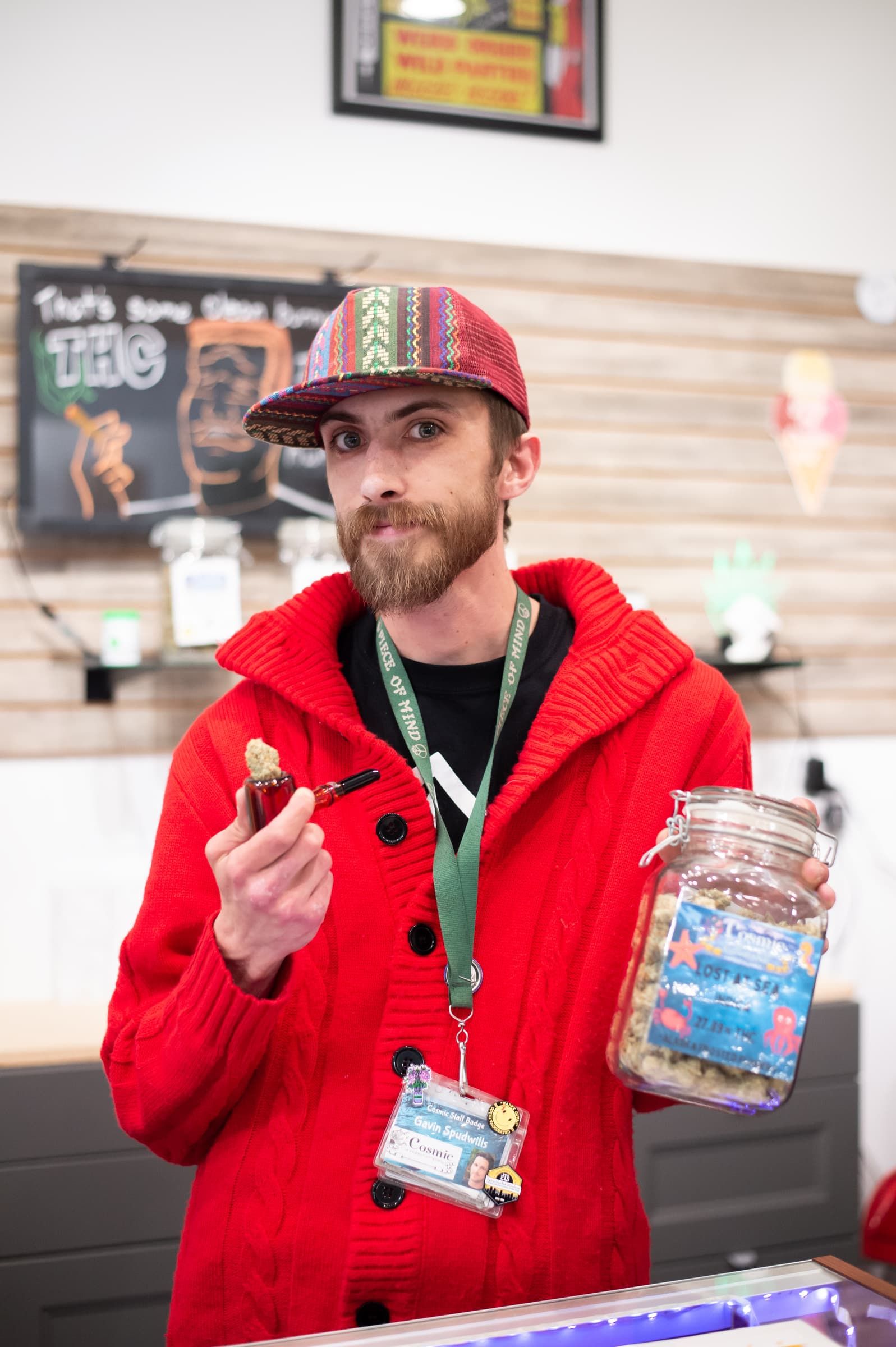 Oddly enough, I do have one regular who says he plays professionally, so we have interesting discussions based on what he’s purchasing. I generally do ask people what they plan on doing when they are making a purchase, rather than what percentage they are looking for, or the requisite indica or sativa question. Then I can get an idea of how to better suit their day.