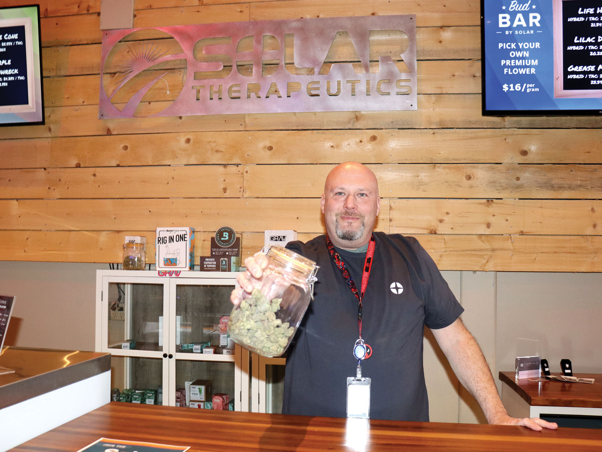 Everyone who walks in the door at Solar Cannabis Co. is interested in Cannabis to some degree. So having Cannabis as the commonality with customers makes a lot of the interaction easier and more personal. There are a lot of people from all walks of life that come into the dispensary each day. Having those interactions with a myriad of people who come in to help with their needs can be a truly gratifying experience. Our customer base varies greatly throughout the course of a day. It could be someone dropping by on their 21st birthday, a novice Cannabis user, or an elderly individual looking for something to help them sleep. Having Cannabis as a common interest with our customer base really allows me to get to know those people on a personal basis.