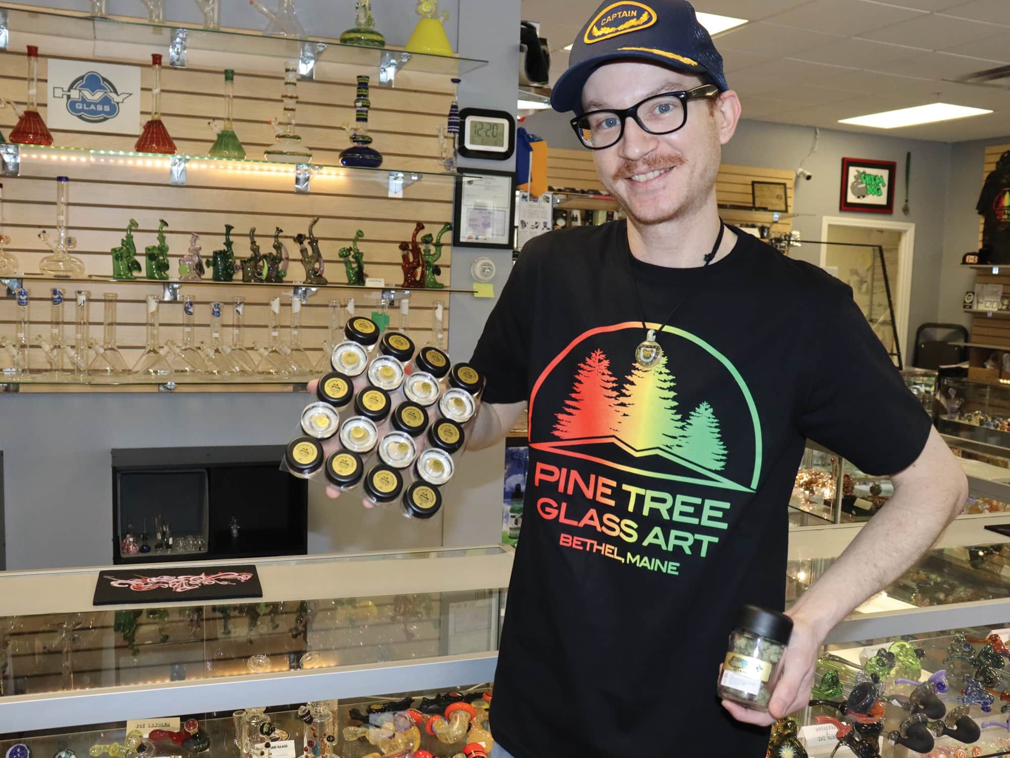We were greeted at Pine Tree Glass by their head budtender and manager, Joey D. Joe’s been passionate about Cannabis for most of his life, so it’s easy to see him smiling, even behind his facemask when greeting new customers. Joey is clearly doing what he loves for a living – eating, sleeping and breathing Cannabis and glass art! After overstaying our welcome, we really got to the bottom of what keeps Joe’s clock stuck on 4:20 every day.