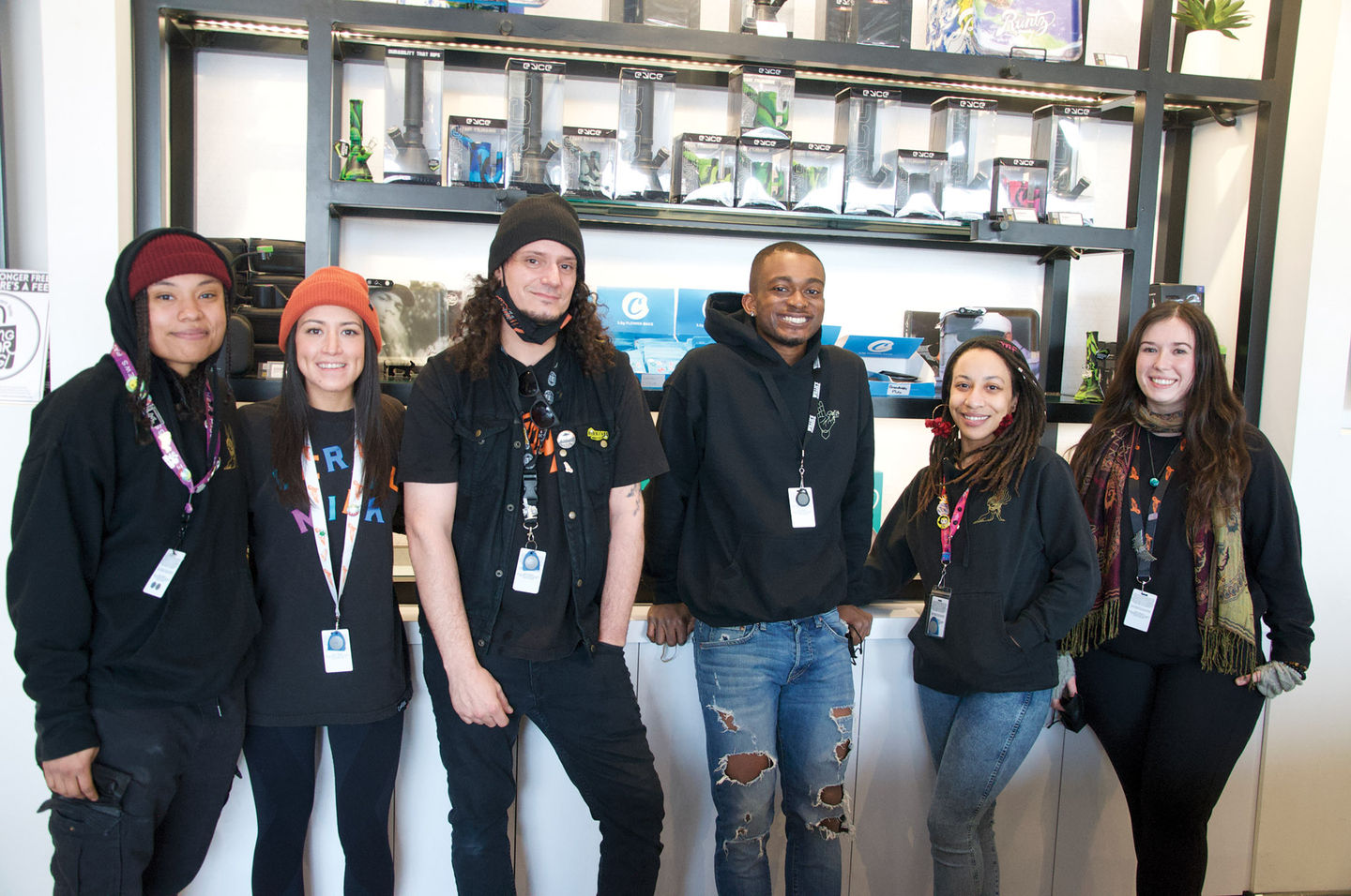 Best described as a friendly boutique, large glass windows and high end display cases make this location truly sparkle. You’ll see products displayed proudly as you make your way to the counter, and behind the counter is a collection of vibrant and enticing products from Cookies, including merchandise and the flower itself.