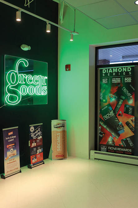 Modern design meets old-school vibes at Green Good’s new-and-improved dispensary in Layhill. Upon entering, your eyes are immediately drawn to the checkerboard floors that lead the way to the counter, which is framed by a backdrop of lettered lockers where preorders are kept. Wooden counters and stools sit at the center of the dispensary, surrounded by brand activations along the walls. This place lives and breathes community energy, and the staff members make the whole experience even more worthwhile.