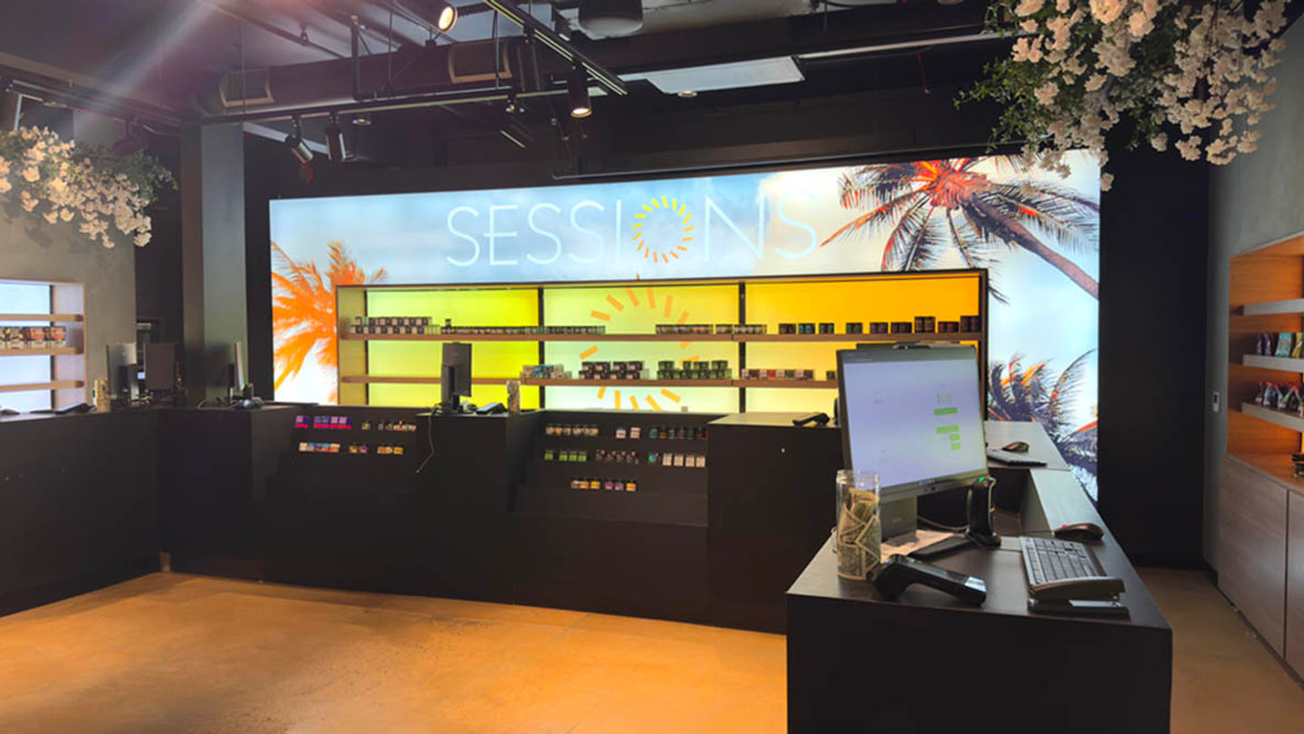 Together with Pearl’s aesthetic spin, the store’s unique layout makes Sessions feel as much of an experience as a store. After all, there aren’t many weed stores in the world that can promise you a quality selection, knowledgeable staff, a trip to an art gallery, healthy snacks, a patio that you can see Mexico from, and blueberry ice cream-flavored Oreos. With such a groundbreaking upstairs, the team at Sessions is working hard to ensure the store is a space with a flair and feeling that complements the lounge but is also all its own — something we feel they’re on track to achieve.