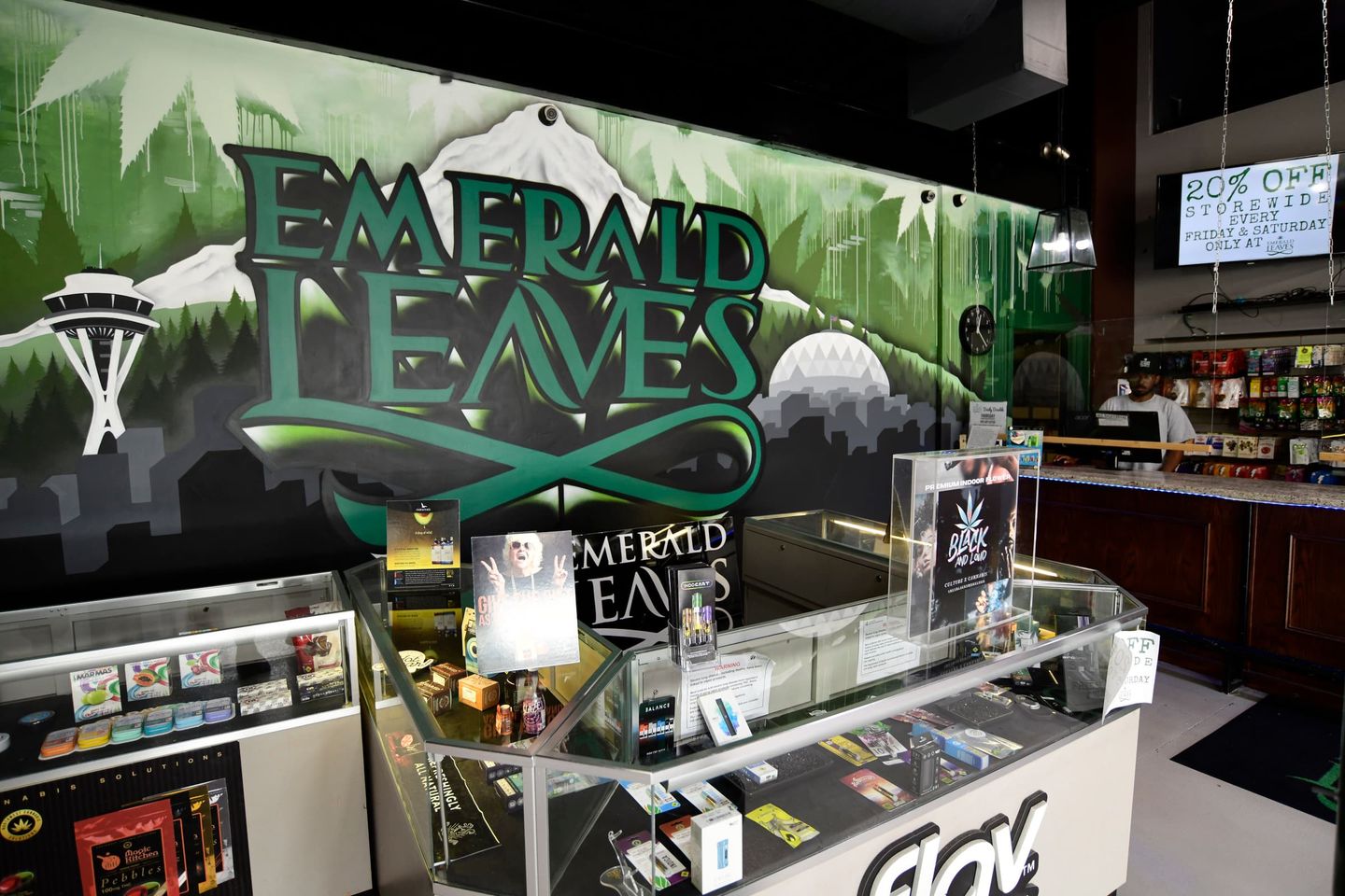 With a wide-open and airy showroom adorned with a cushy Very Important Pothead area, there’s plenty of space to chill out to read a Northwest Leaf, catch up on IG, or just take in the scenery. Glass walls offer a rare 180-degree perspective of the bustling city outside, while inside the fine finishes and stocked shelves induce butterflies of anticipation. You’ll see the Seahawks pride in a couple of hanging Super Bowl Championship banners, along with identifying mural art making the walls pop into a hip surrounding of local enthusiasm.