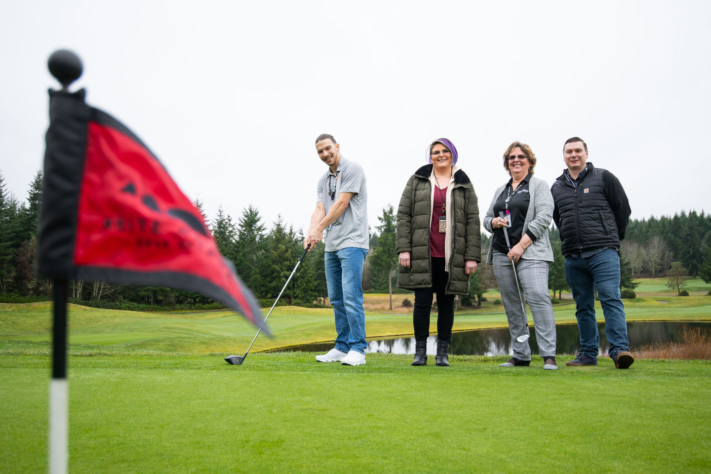 The only Cannabis shop on a golf course in the entire country is right here in your backyard. Wow! It’s almost surreal as you peer over the dabs and eighths to see tees and sleeves with the 18th green just outside. And you might even catch an eagle (the real kind) named Aflac posted up on a distant treetop or light post. There’s also a cougar who doesn’t have a name, but they’re taking suggestions. Same with the resident black bear who you might catch tramping by, too. Oh, and just so you know: This is one of the more difficult courses in Washington state, commanding deep respect from golfers who appreciate a well-designed course.