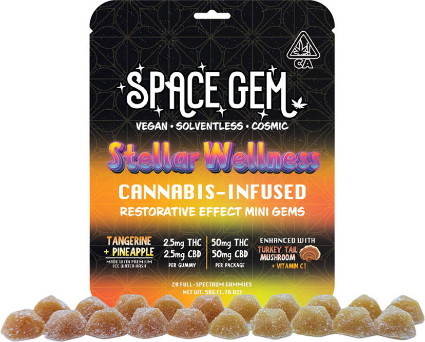 All Space Gem gummy candies use solventless ice water hash that is activated through a heating process called decarboxylation before being bonded with coconut oil. The OG classic Space Drops still come in multiple flavor and cannabinoid variations, with a 1:1 THC:CBD version providing a strong counterpoint to the high THC experience.