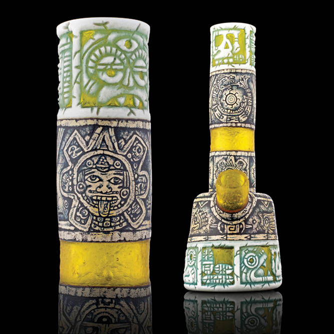 Paving his lane in the art world, Trevy skillfully uses a dremel to engrave his immaculate works of art onto all sorts of incredible borosilicate glass pieces. Using everything from nostalgic imagery like Gameboy to ancient Egyptian designs, Trevy’s artwork tells a story and elevates the smoking experience to a new level.