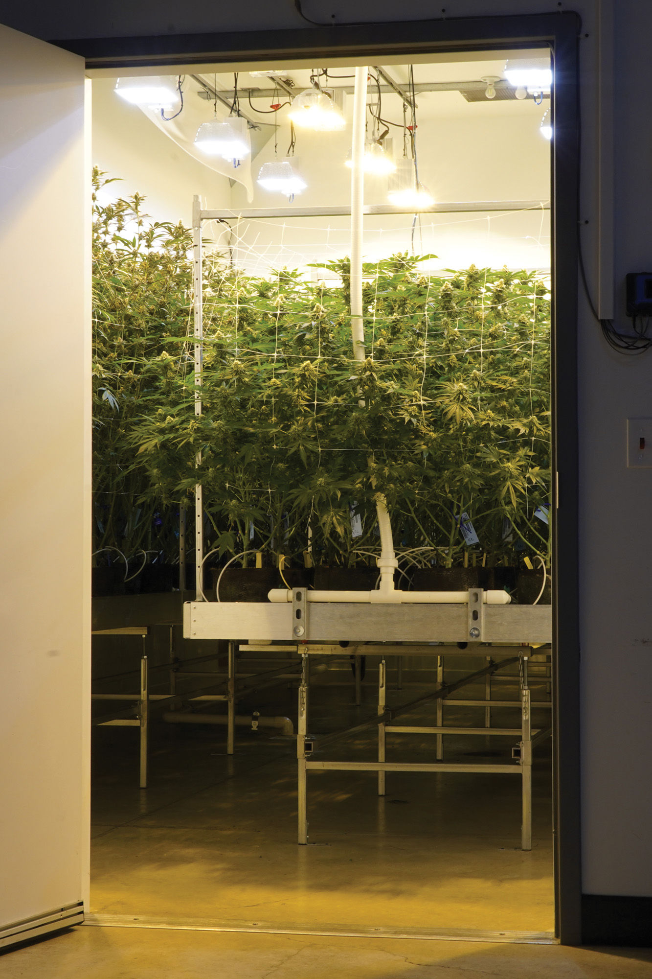 After a lengthy battle with a former investor that almost ended in disaster for the farm, Latta was able to finish the buildout with a new and like-minded business partner. They built 12 large grow rooms, a cure room, a spacious nursery for moms and clones, and a beautiful nutrient work room. The nutrient room is artfully designed and deserves mentioning.