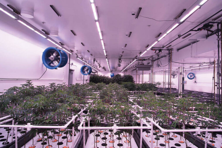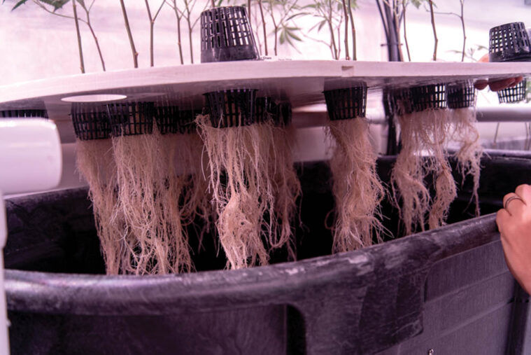 Operating solely on LEDs, the processes utilized for horticulture at this facility do not rely on soil. From a plant’s careful propagation to harvest, the root zone is misted with a blend of nutrients and water that is purified on-site and pH-controlled. That water is monitored by a complex network to provide the prime blend of oxygen and nutrients that are suited for each strain of Cannabis Redbird brings to life. Due to the readily available uptake provided by the high-pressure aeroponics, every 200 to 300 seconds, the suspended roots are misted for 1 to 2 seconds, depending on various metrics. The difference between this process and the low-pressure aeroponics systems of the past is night and day.